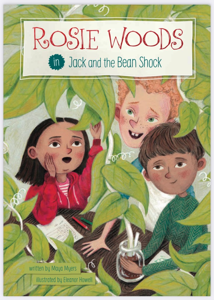 In Jack and the Bean Shock, Rosie can’t quite figure out her new classmate, Jack. Jack is really great at drawing, and he’s helping with the table’s science experiment, but he doesn’t seem to want to say a word to Rosie. What if he doesn’t like her? What if their science experiment is a flop? And where did their fourth bean plant go, anyway?